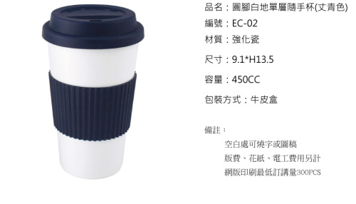 EC-02 圓腳白地單層隨手杯-寶藍色