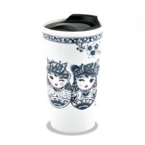 青花娃娃風雅隨手杯+矽膠蓋+窗花隔熱套