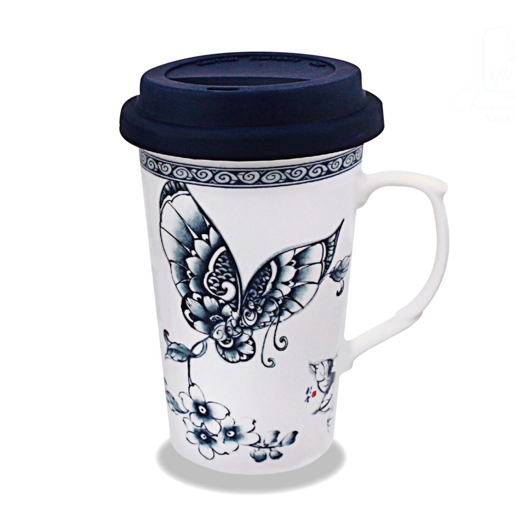 品名:青花舞蝶單層牛奶杯+矽膠蓋