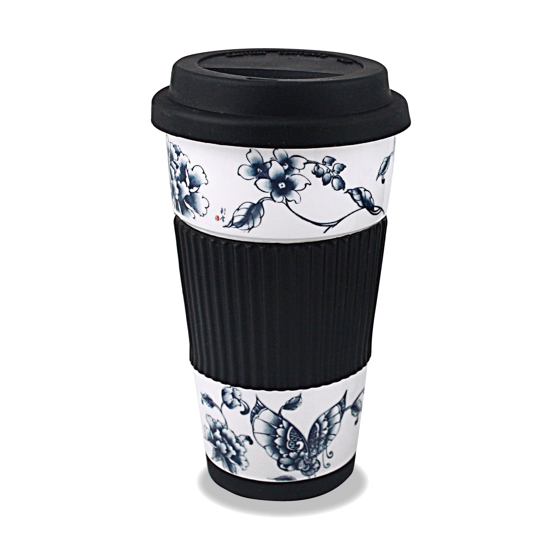 品名:青花舞蝶紳士隨手杯+硅膠蓋