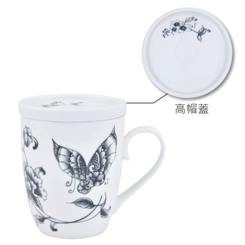 青花蝶語樂福杯+高帽蓋