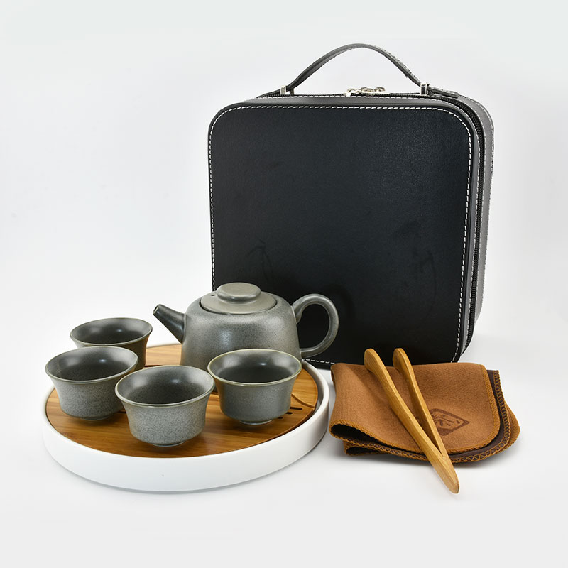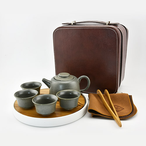 【產品介紹】 這套茶具在材質上採用上陶青石釉陶瓷, 冷淡的色調正如茶之本心, 在繁華浮世裡保留自己的淡然高雅, 為自己的清淨之心找安放之處, 以桃木底托,代表納福之意; 閒暇之時,泡一壺好茶,品茶味、聞茶香