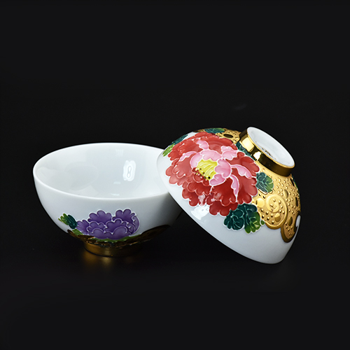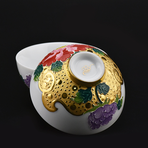 採用德國12K真金半鎏金設計,細緻白底襯托牡丹之美,