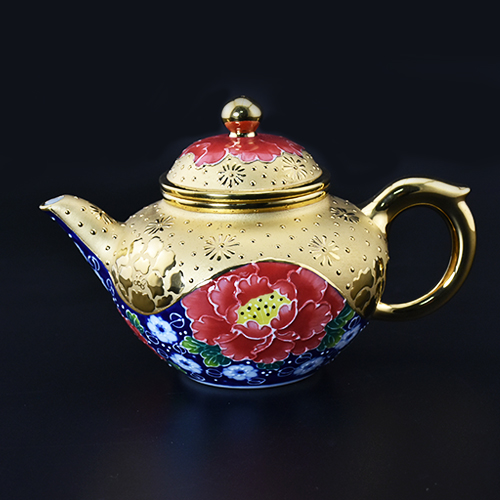 德國12K真金,塗上透明釉繪出黃金牡丹,整體視覺華麗,寓意金華富貴