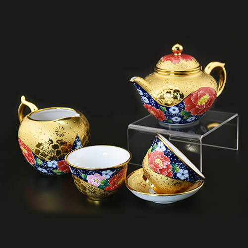 慈暉富貴牡丹藍鵲茶具組