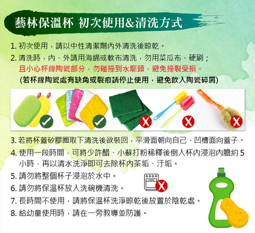 2.清洗時,請用海綿或軟布清洗,勿用菜瓜布、硬刷。